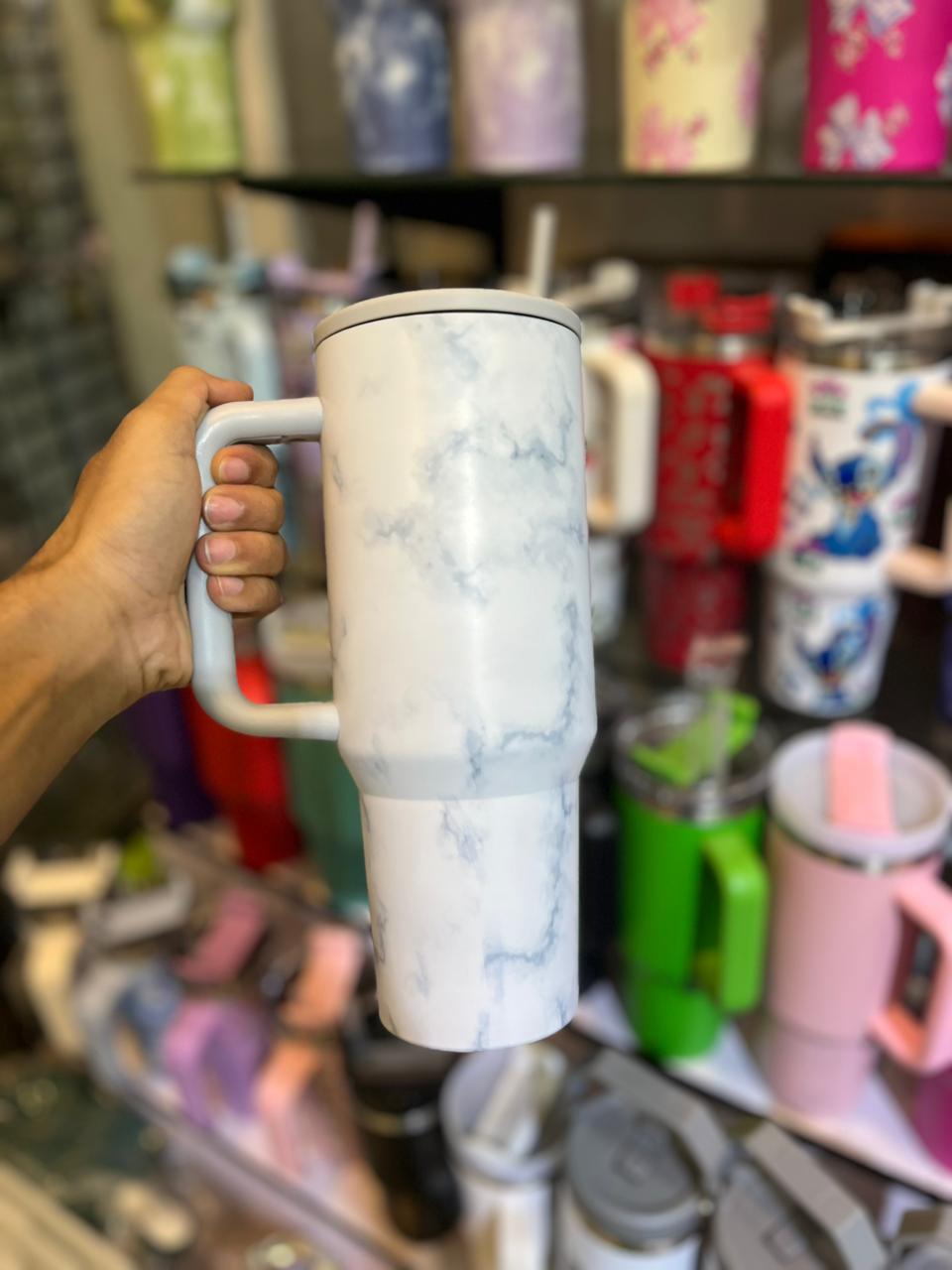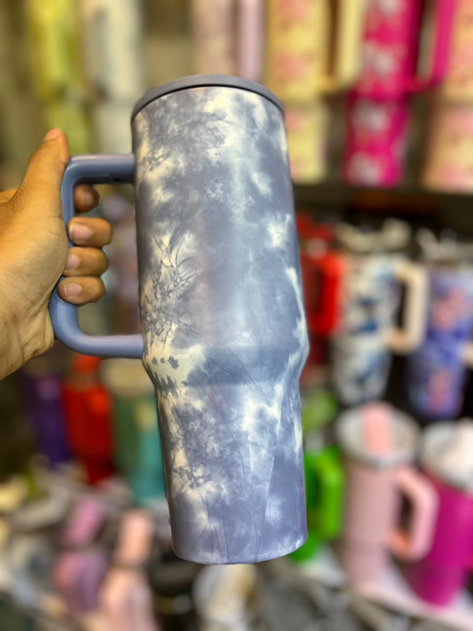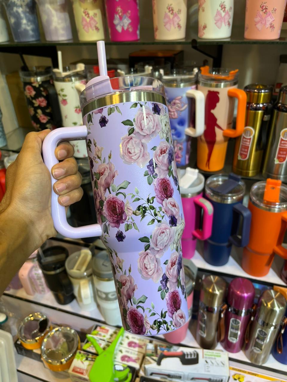 40oz Premium Stainless Steel Tumbler with Handle & Straw – Insulated Hot & Cold | Multiple Colors & Patterns
