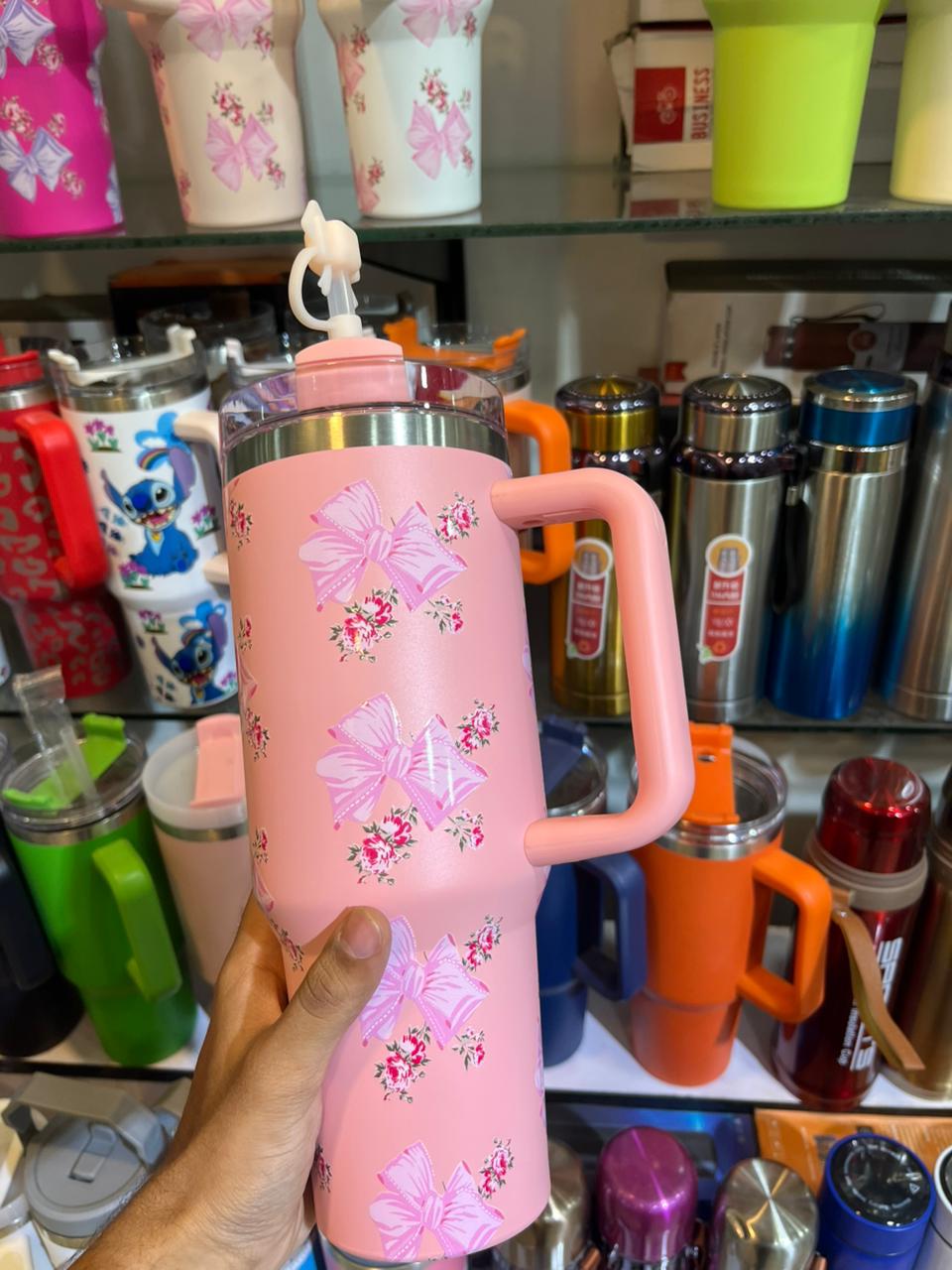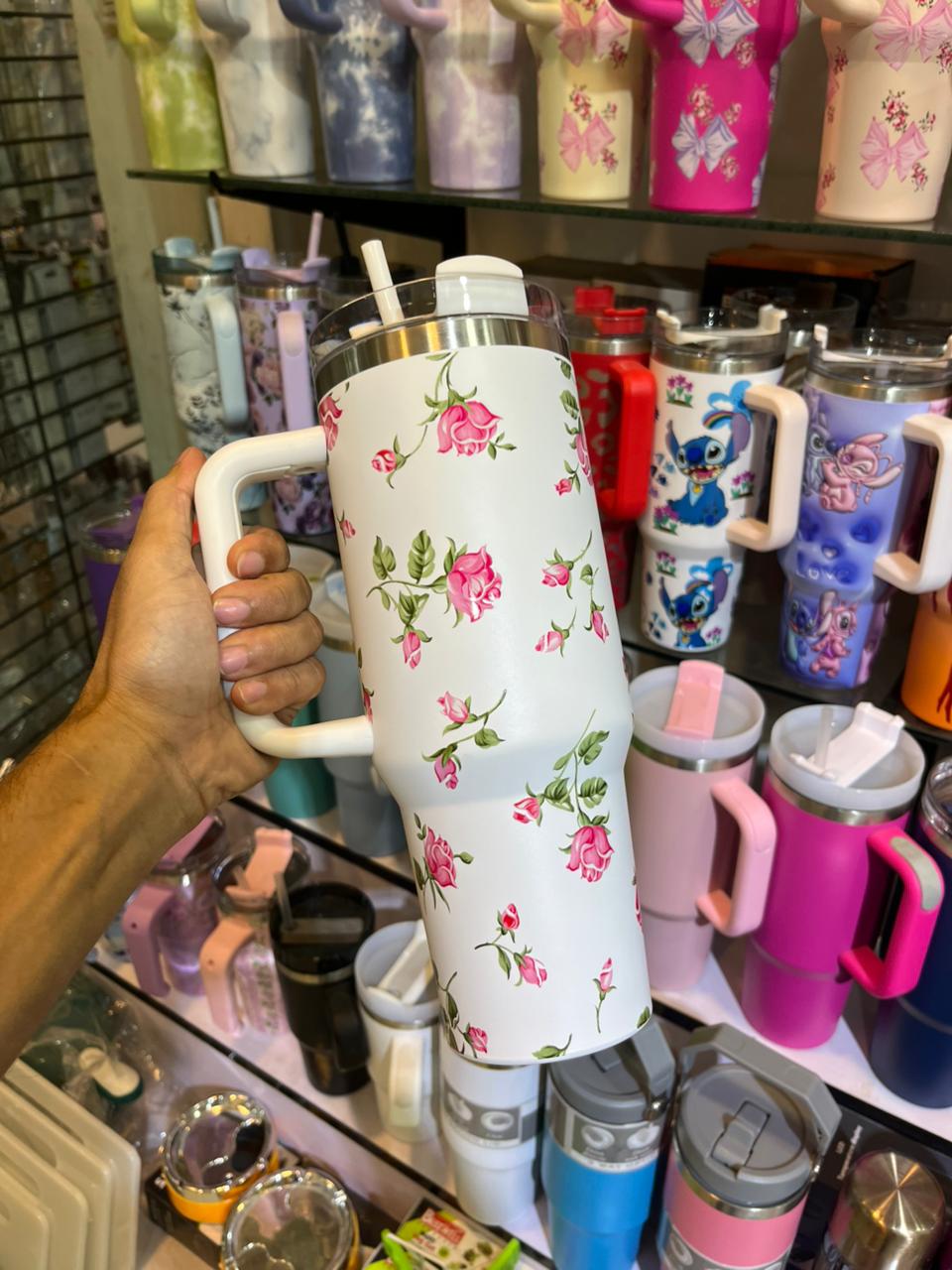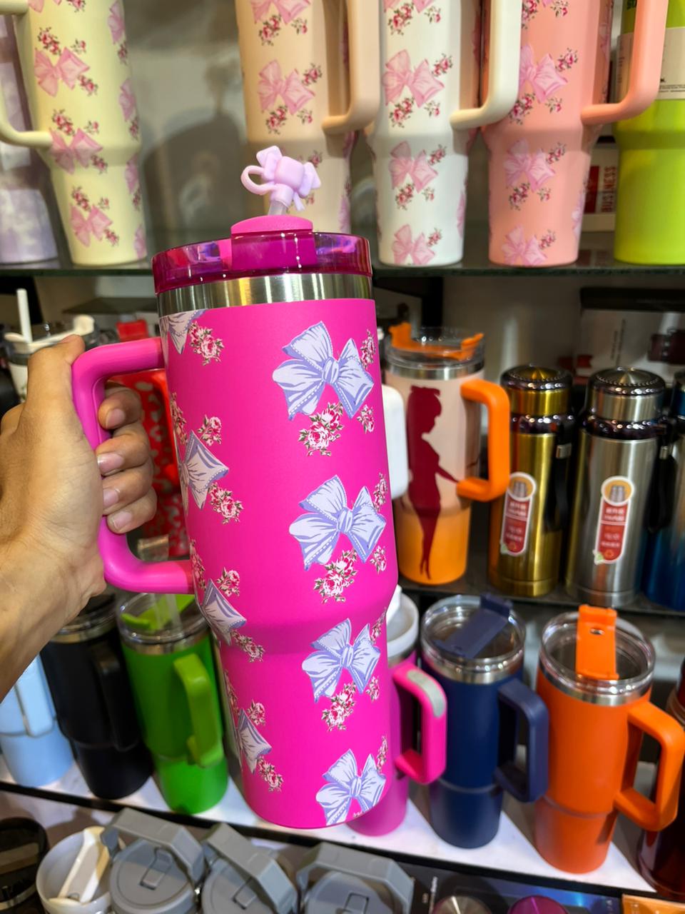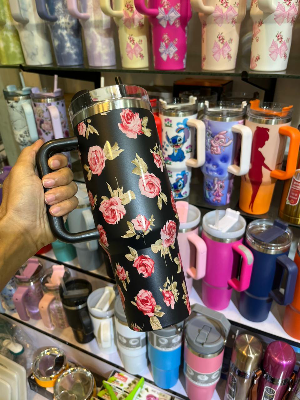 40oz Premium Stainless Steel Tumbler with Handle & Straw – Insulated Hot & Cold | Multiple Colors & Patterns